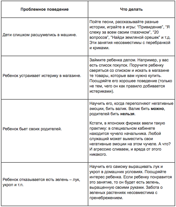 Выработка несовместимого поведения ― научить человека другому поведения в проблемной ситуации. Поощрять поведение, которое устраивает вас.